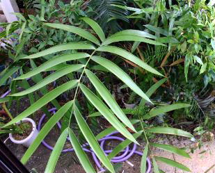 | 独特な小葉の配列 | 雄球果 | 雌球果(上原さん宅) ネットに広大で人工授粉で絶滅危惧種の種子を得たと出ていたけど、上原さん宅ではかなり前から種子ができています。 |