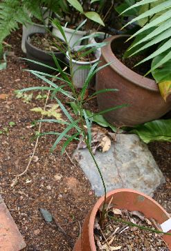 地上に茎を作るタイプはシンノウヤシの葉に似た葉を出す。