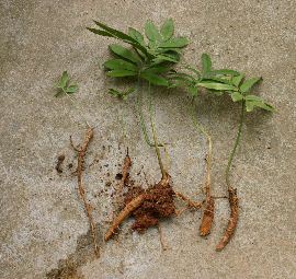 | 折れた根から自然に新株ができる | 根から出た株 | 根から新芽が出てくるところ |